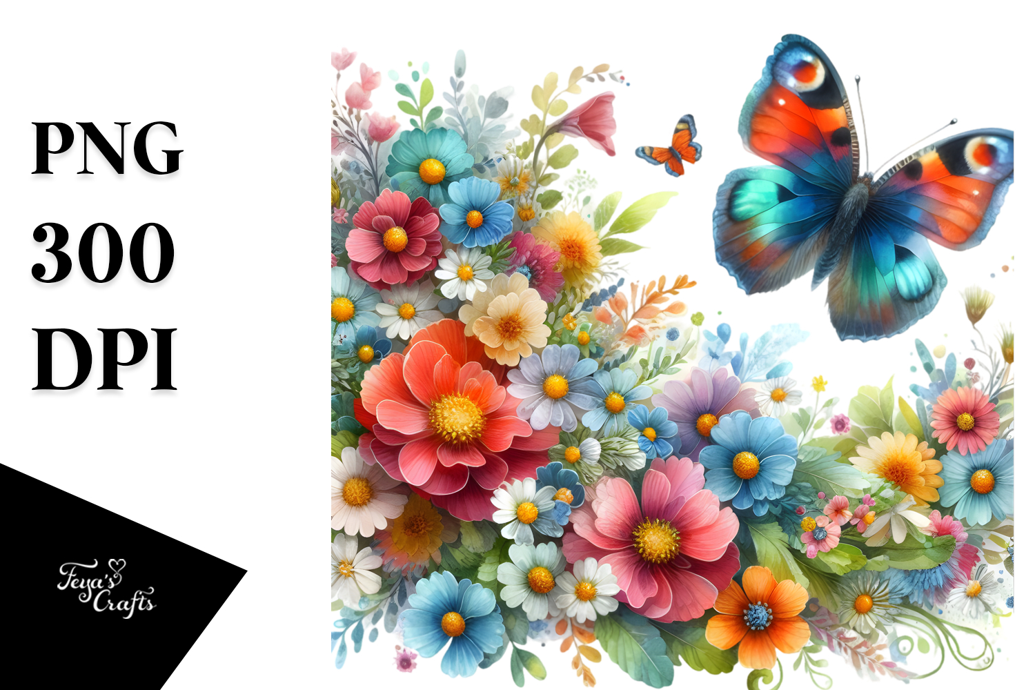 Sticker Summer Flower Butterfly Png Sublimation Whitebackground Springflowers Butterflysilhouettes