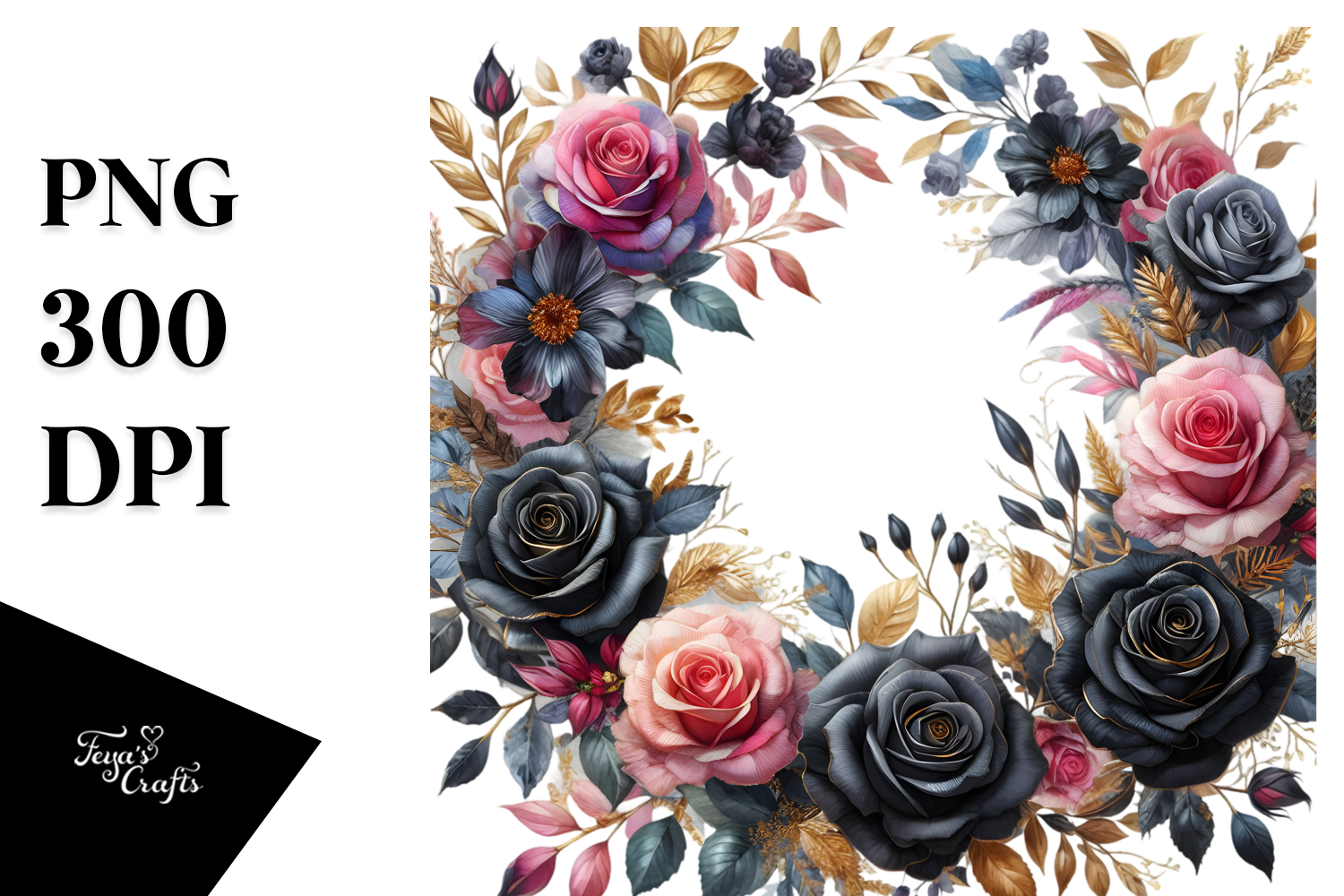 Floral Frame with Black Roses and Gold Insertions example image 1