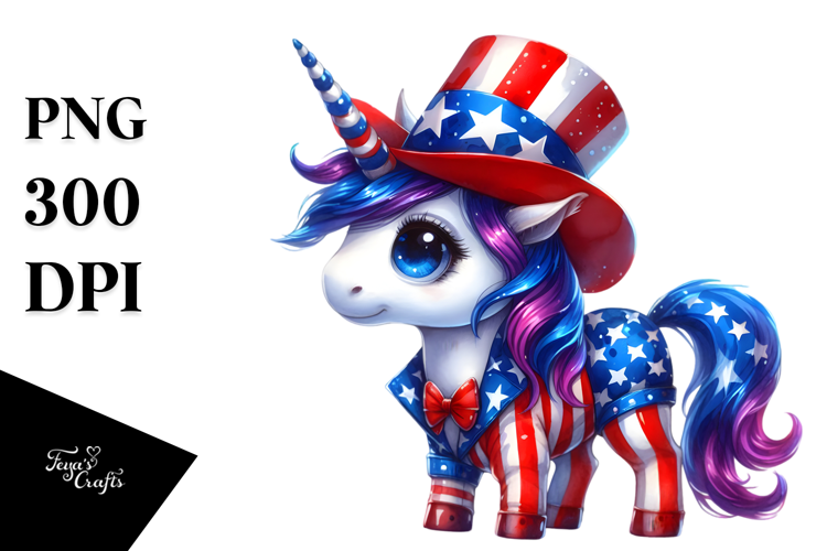 Patriotic Unicorn with Retro Clothes PNG example image 1