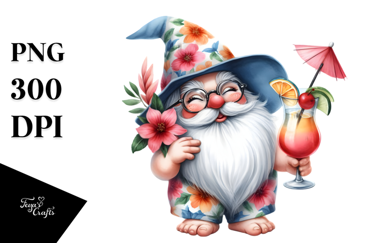 Sticker Summer Flower Png Sublimation Gnome Beachwear Drinkingcocktail