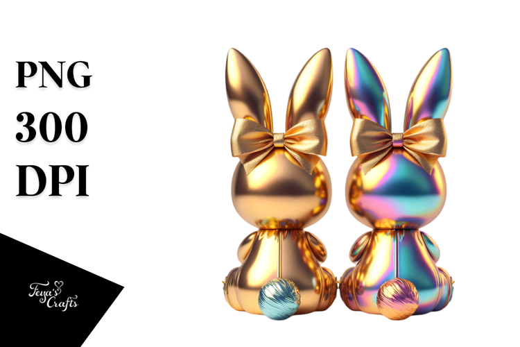 Vintage Retro Colorful Sitting Bow Bunny View Back Whitebackground
