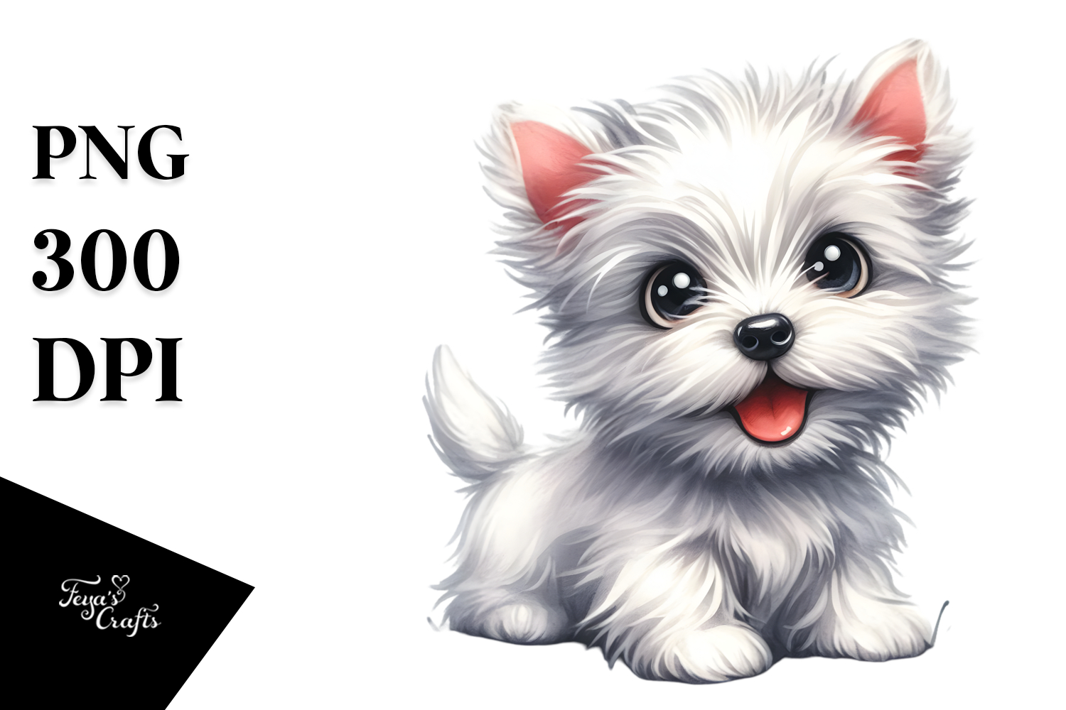 Cartoon Watercolor Baby Happy Clipart Whitebackground Westhighlandwhiteterrier Bigeyes Crazyfur