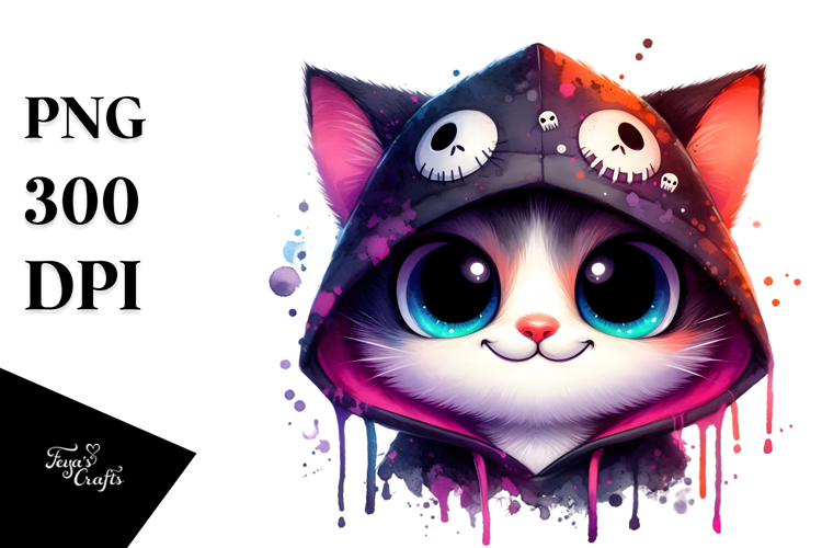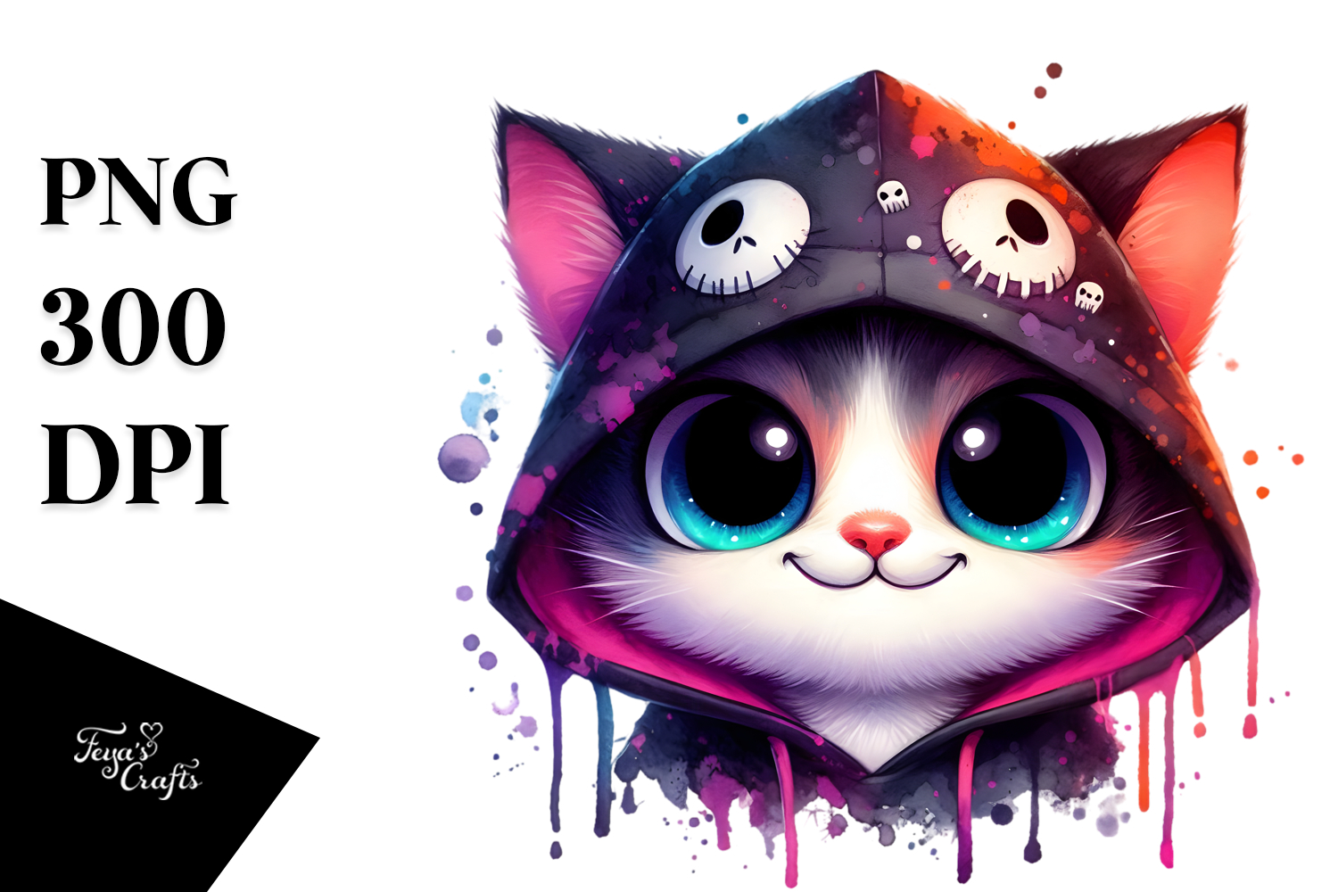 Adorable Spooky Cat Hoodie, Cartoon Style PNG example image 1