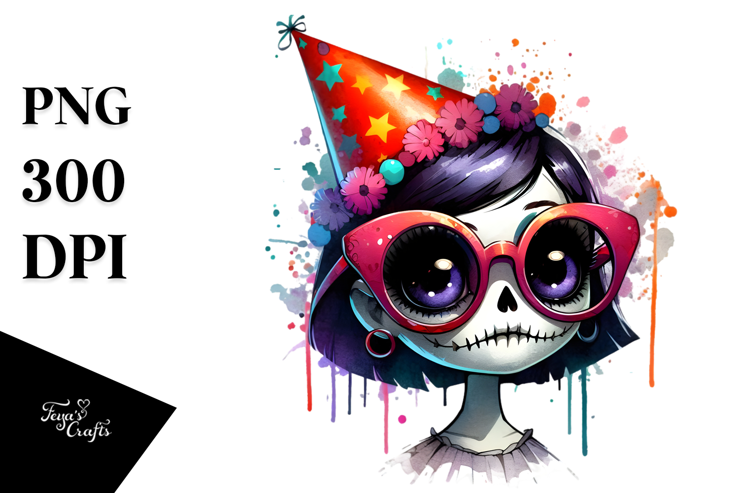 Graceful Ghoul Girl with Party Hat, High-Res PNG example image 1