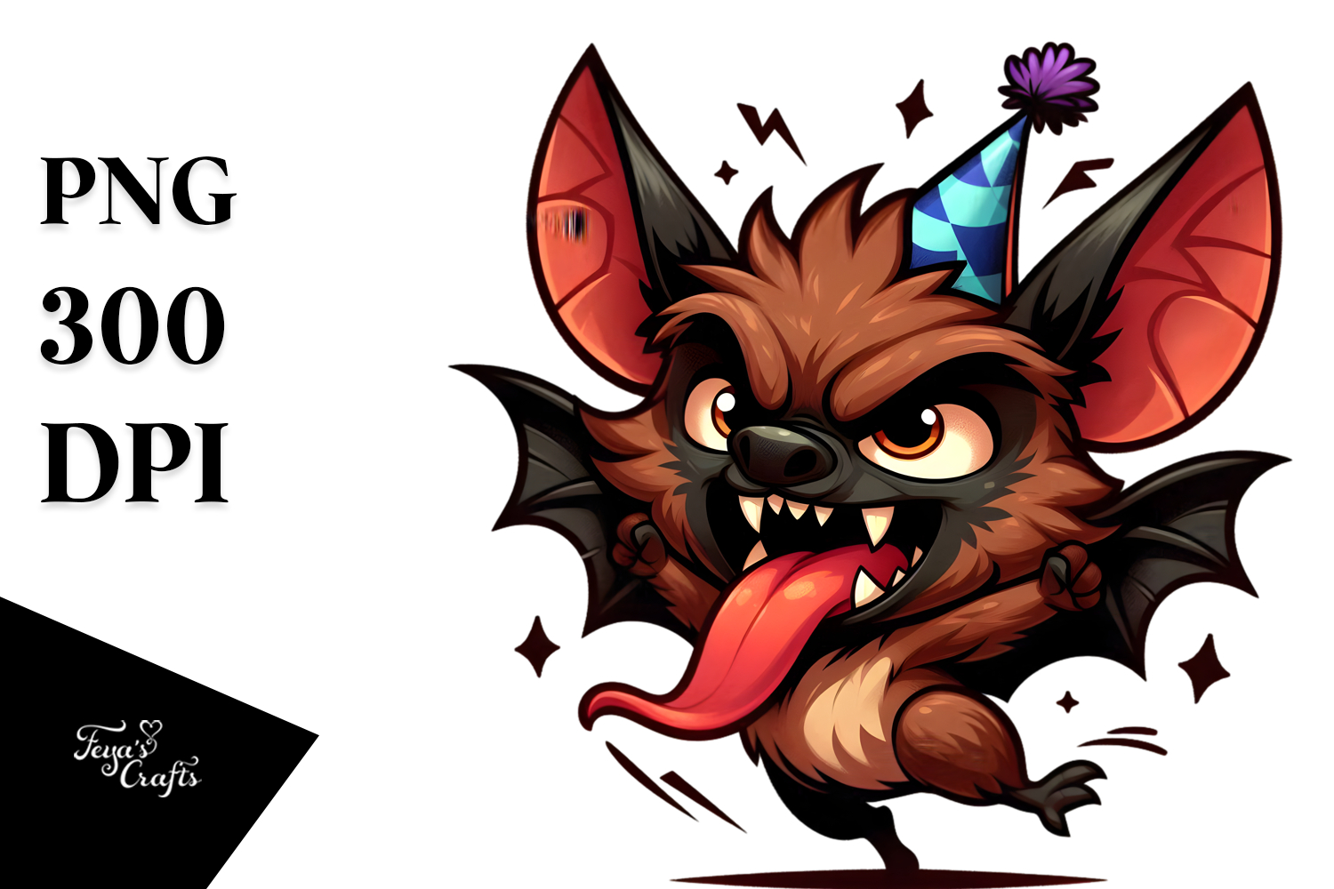 Cartoon Vector Art Bat Cartoony Aggresive Partyhat Tongue-outface Dancinghindlegs