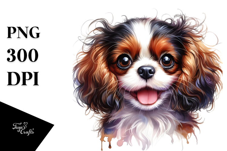 Watercolor Baby Cavalier King Charles Spaniel example image 1
