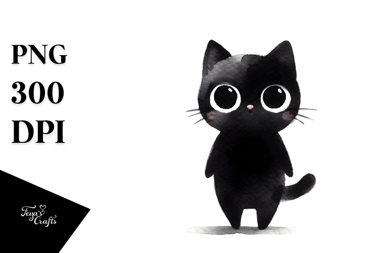 Watercolor Simple Focused Whitebackground Centered Blackcat Elementtouchingcanvasedges Inkwash