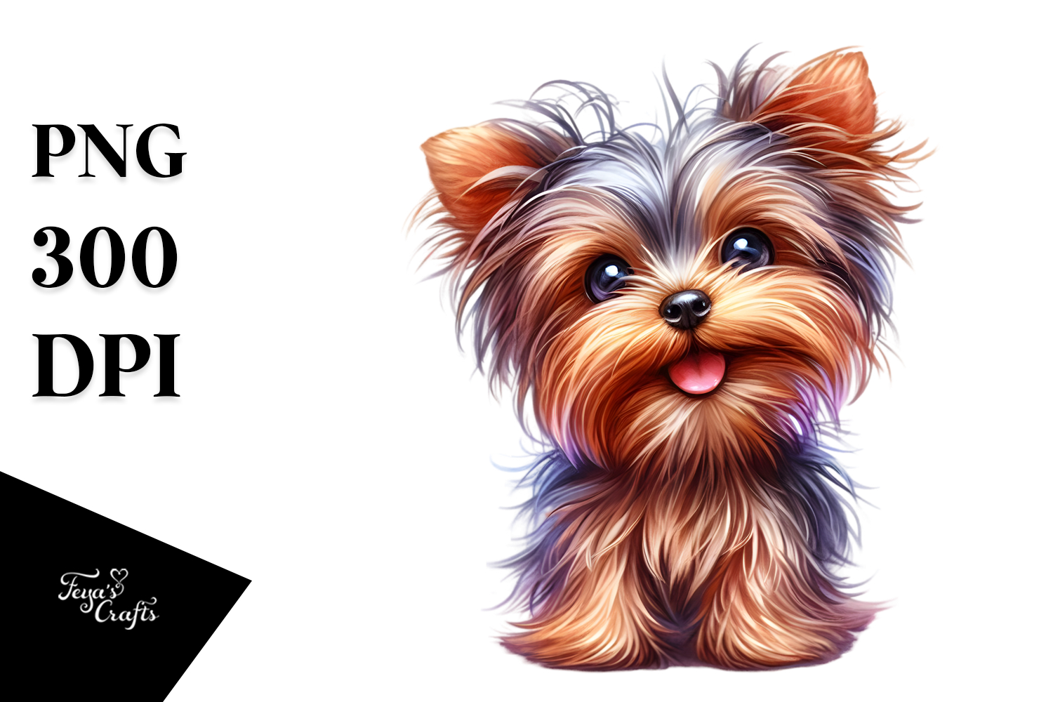 Watercolor Cute Yorkshire Terrier PNG example image 1