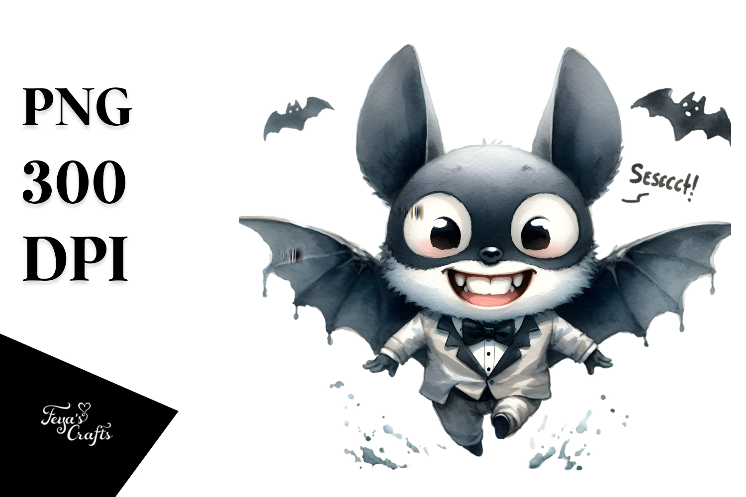 Funny Simple Bat Washed Watercolor PNG example image 1