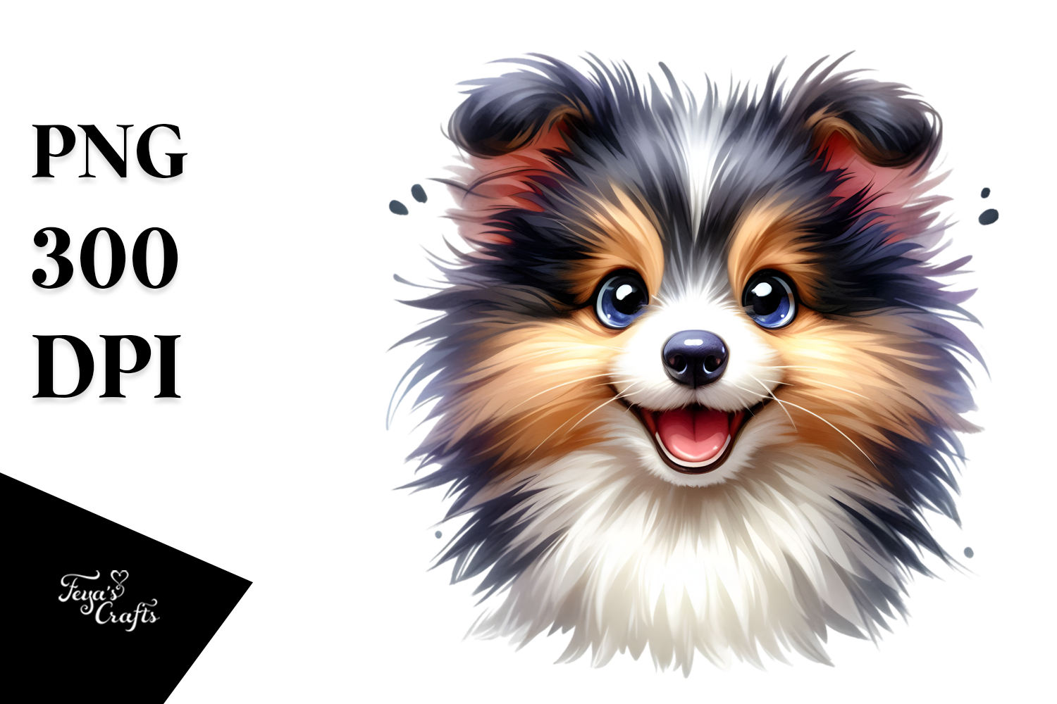 Cute Shetland Sheepdog Pup, Watercolor PNG example image 1
