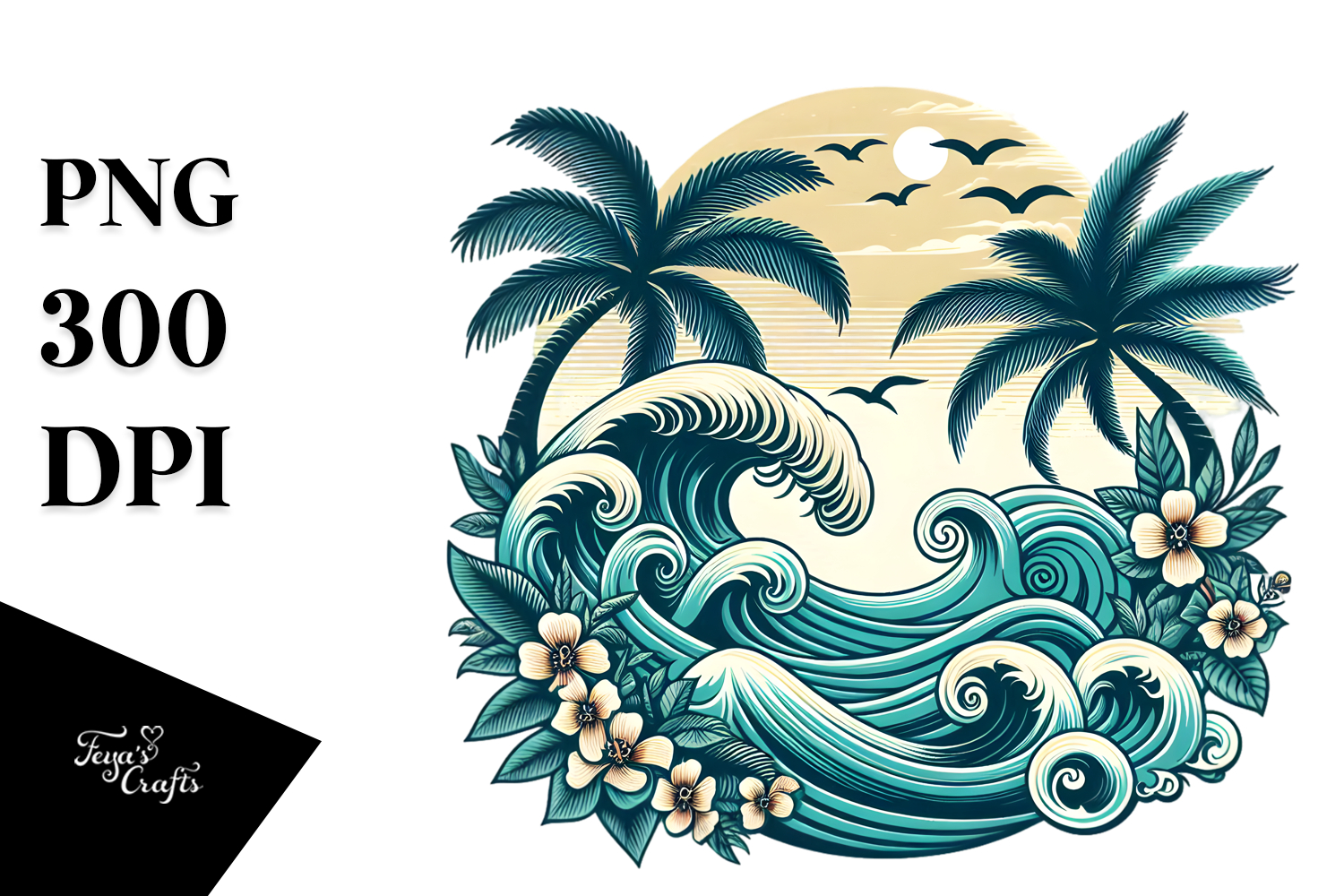 Retro Tropical Waves PNG example image 1