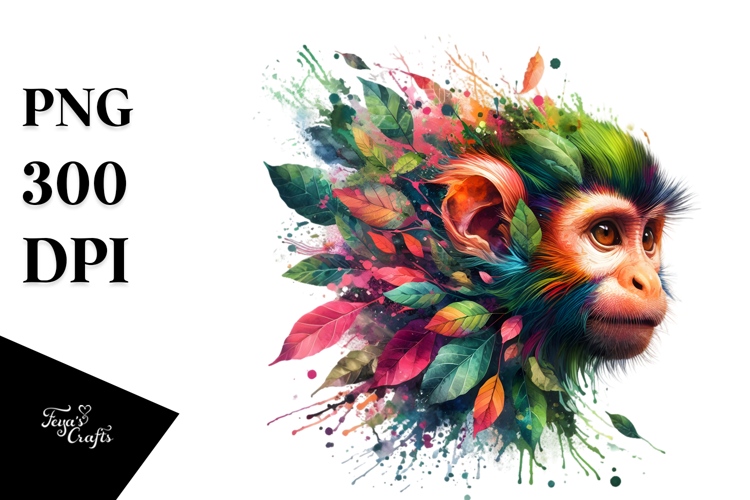 Vibrant Watercolor Monkey made of Plant Leaves PNG example image 1