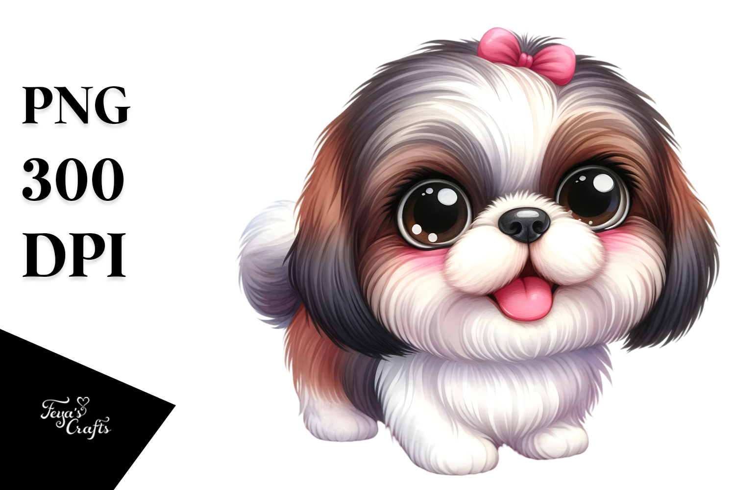 Cartoon Watercolor Cute Happy Whitebackground Shihtzu Bigeyes