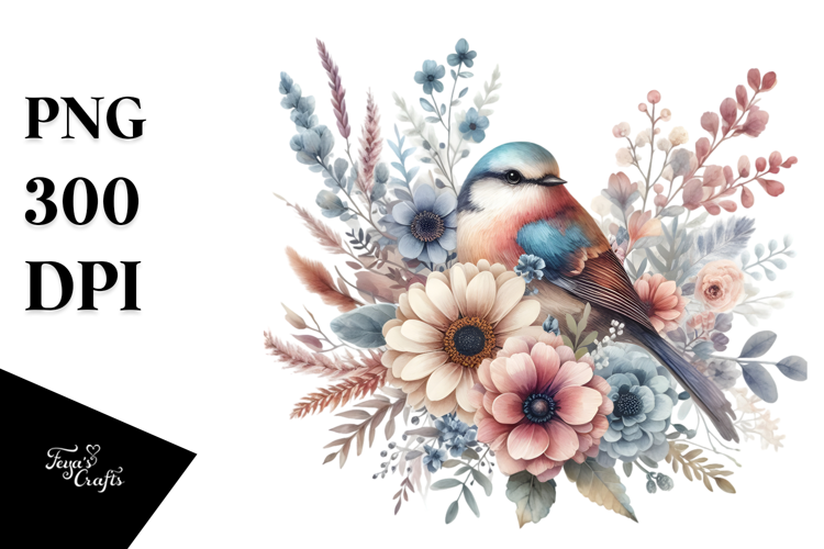 Delicate Stylish Watercolor Elegant Painting Flowers Digital Boho Bird