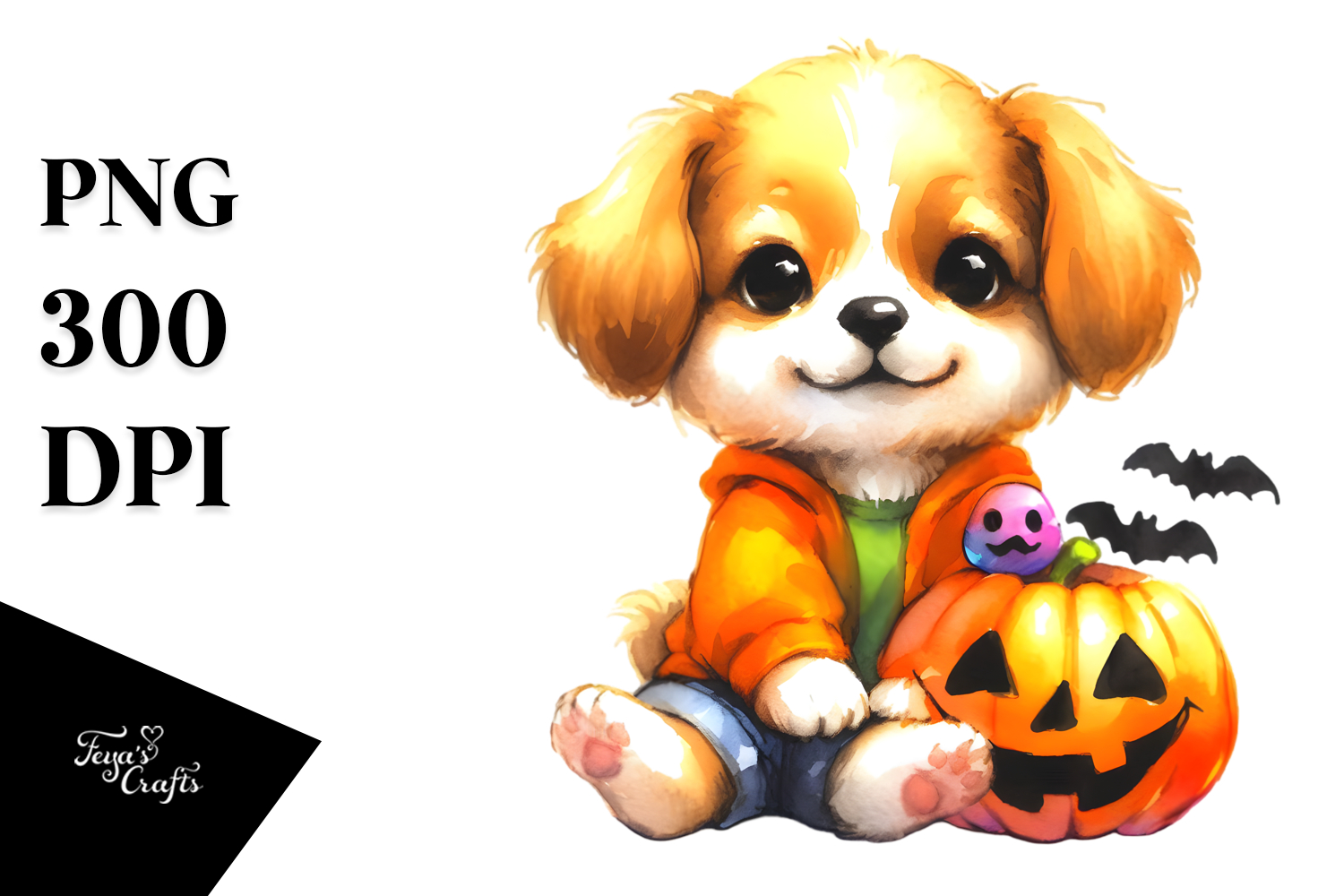 Watercolor Halloween Cute Happy Vibrant Babydog Jeffkoonsstyle