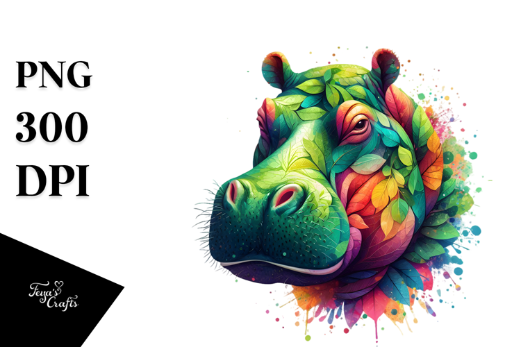 Watercolor Splashes Leaves Plant Vibrant Body Hippo Whitebackground
