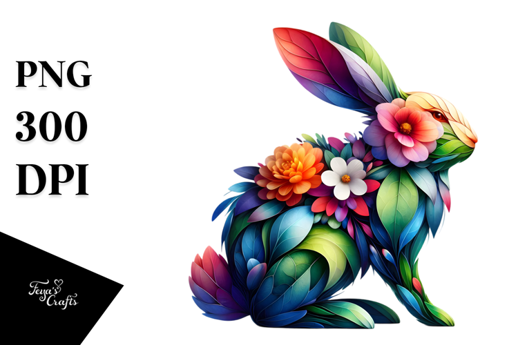 Watercolor Abstract Frame Vibrant Bunny Glass Whitebackground Plantleaves 3dlookingflowers