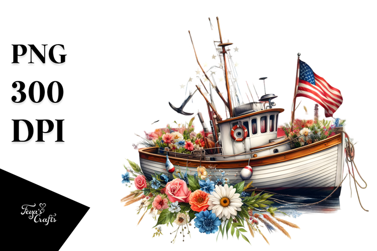 Vintage Sticker Summer Flowers Png Sublimation Centered Usaflagcolors Fishingboat