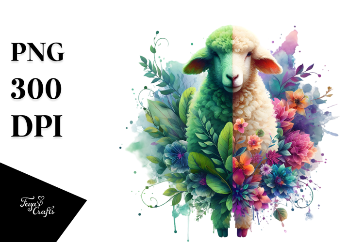 Watercolor Splashes Abstract Vibrant Glass Lamb Whitebackground Plantleaves 3dflowers