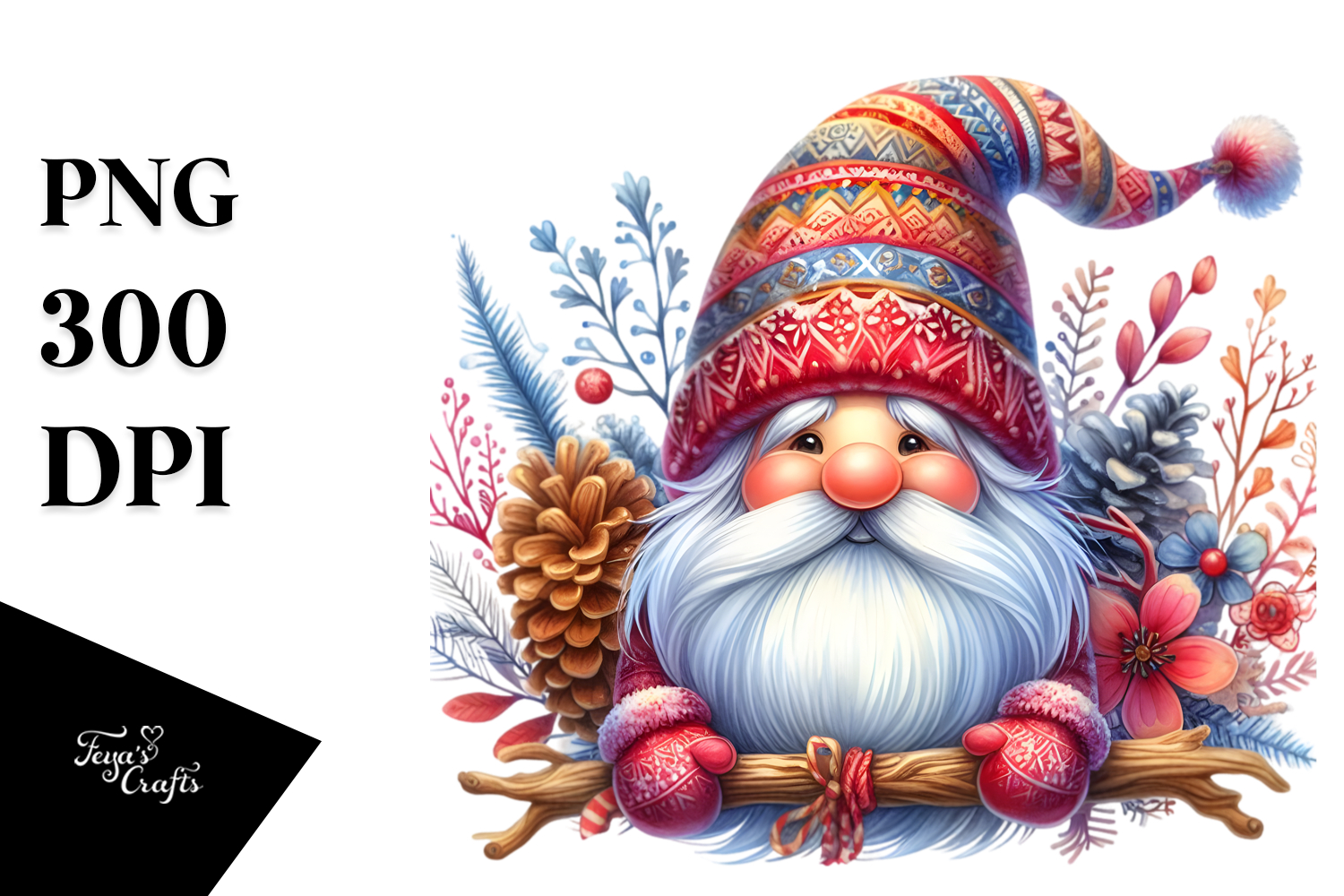 Watercolor Vibrant Whitebackground Centered Wintergnome