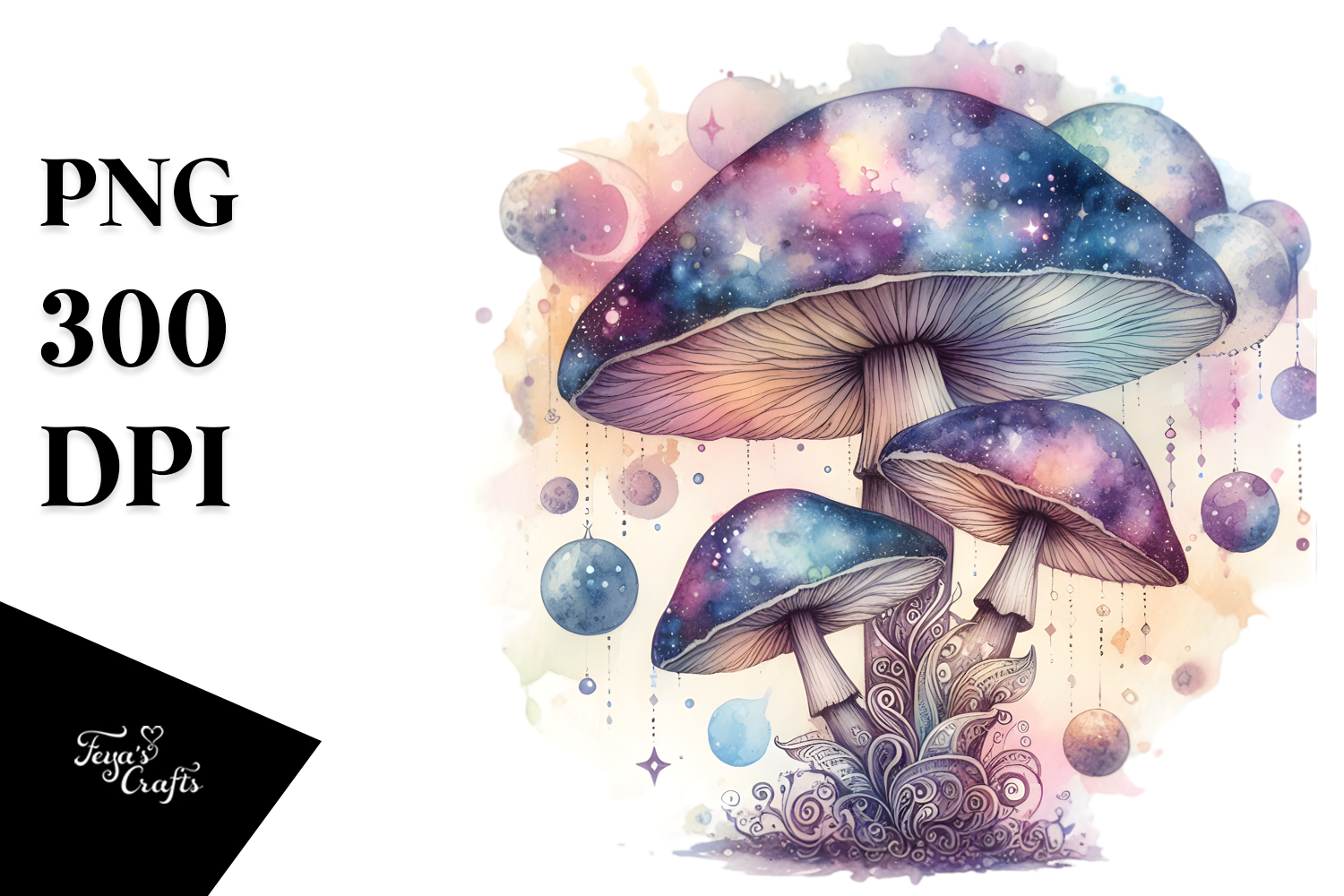 Mystical Celestial Mushroom Watercolor PNG example image 1