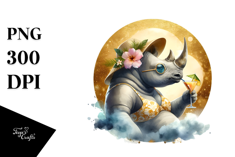 Watercolor Rhino Whitebackground Beachwear Goldfoil Cloudofdust Drinkingcocktail