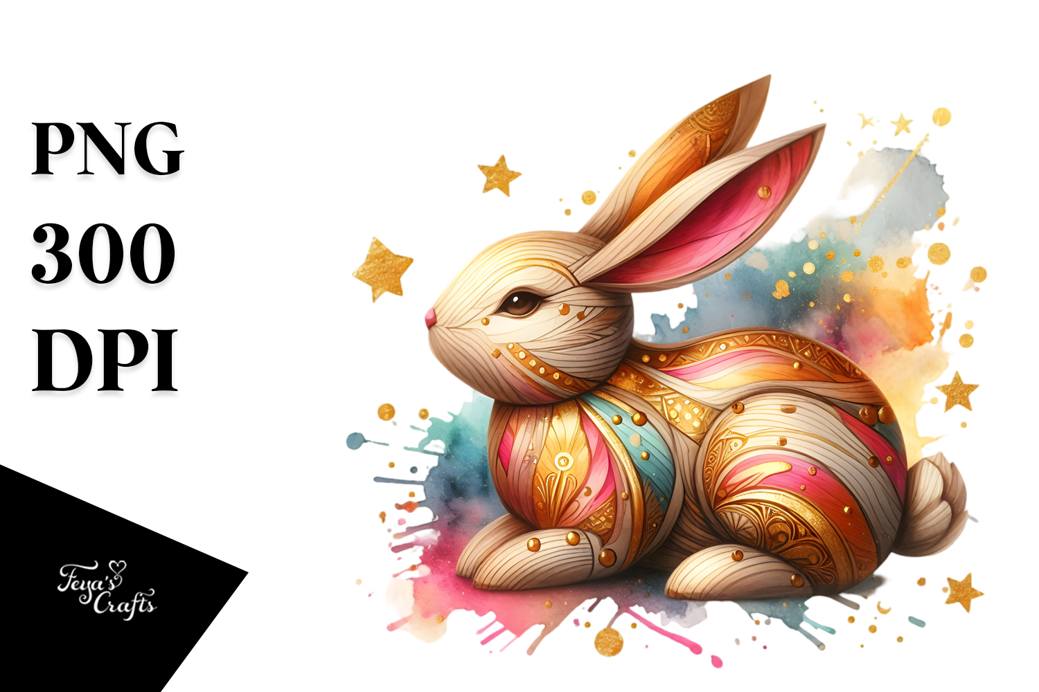 Watercolor Colorful Vibrant Bunny Goldeninsertions Splashy Woode