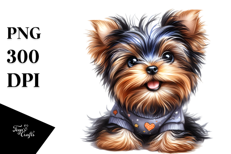Cartoon Watercolor Baby Happy Whitebackground Yorkshireterrier Bigeyes Crazyfur