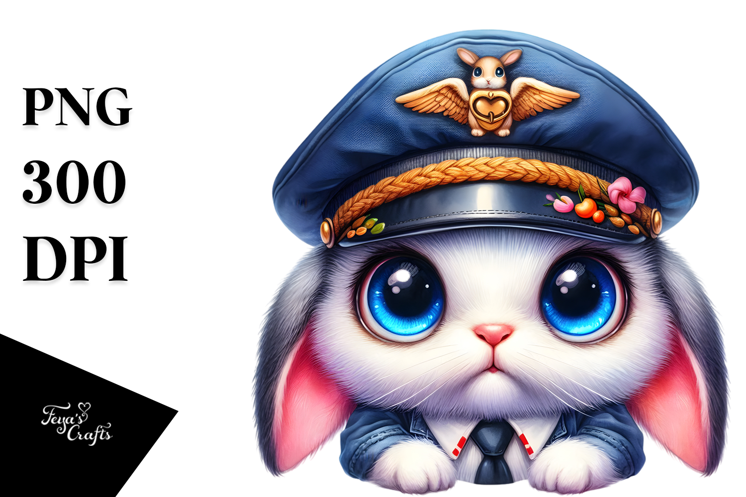Goofy Baby Bunny with Pilot's Cap, PNG