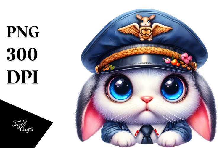 Goofy Baby Bunny with Pilot's Cap, PNG example image 1