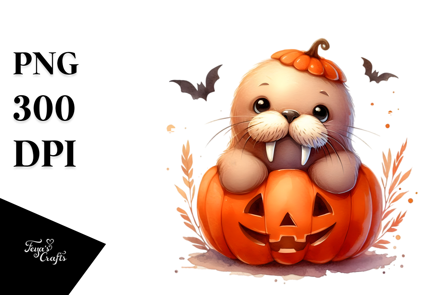Image Watercolor Halloween Cute Sublimation Whitebackground Babywalrus
