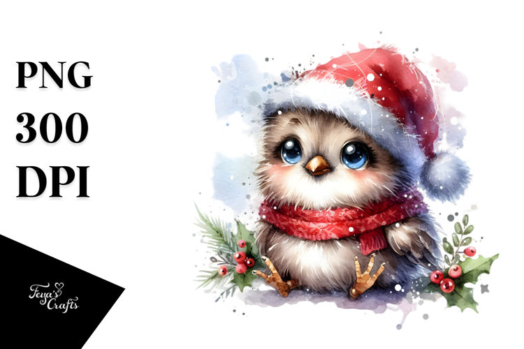 Cute Christmas Bird Illustration, High-Res PNG example image 1