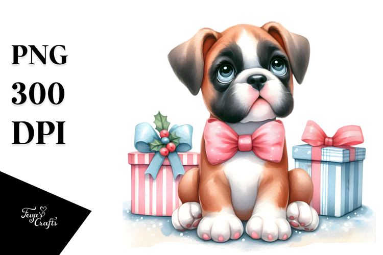 Watercolor Cute Winter Boxer Christmass Whitebackground Christmasgifts Pastelcolors