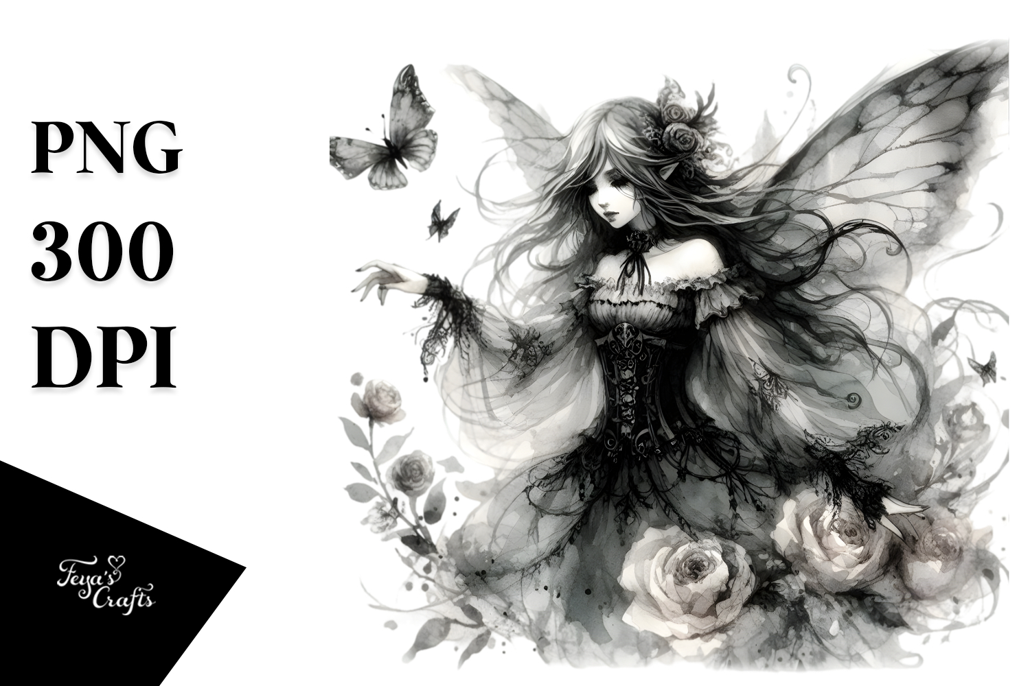 Washed Watercolor Gothic Fairy, Transparent PNG example image 1