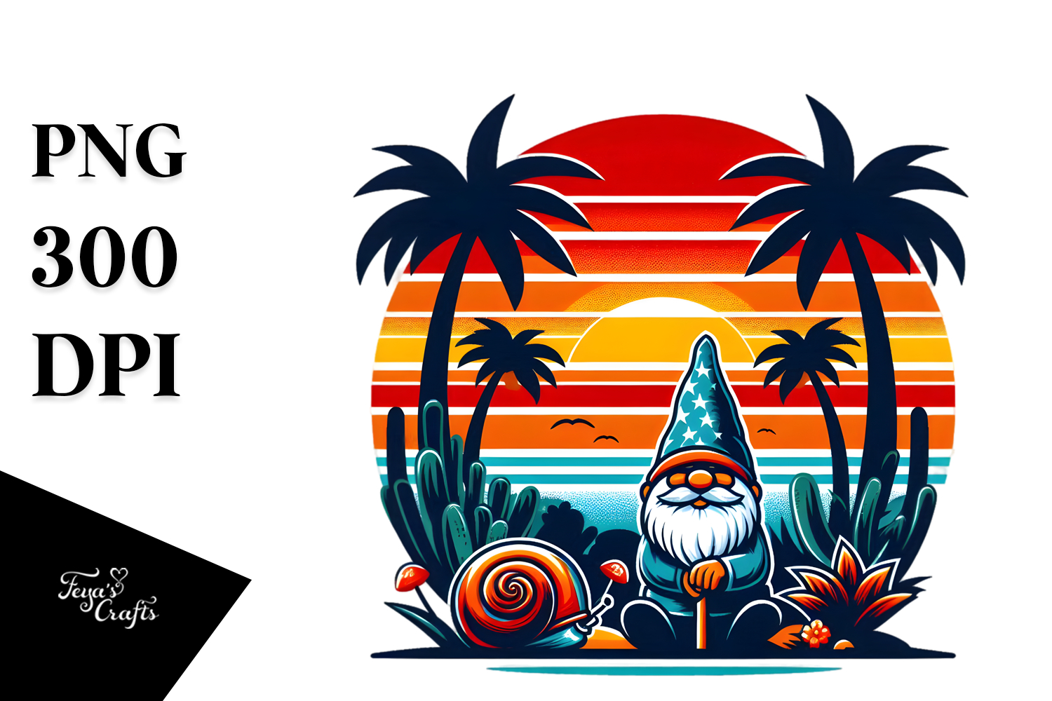 Retro Sticker Summer Flower Sunset Tropical Png Sublimation Gnome