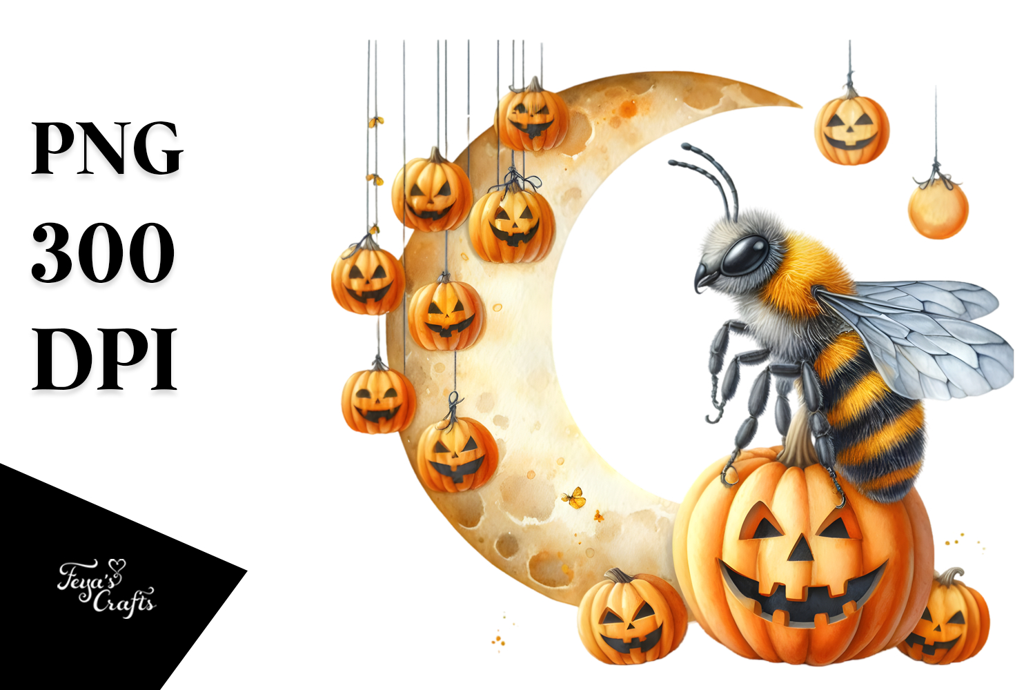 Watercolor Sticker Summer Halloween Png Bee Sublimation Jackolanterns Halfmoon