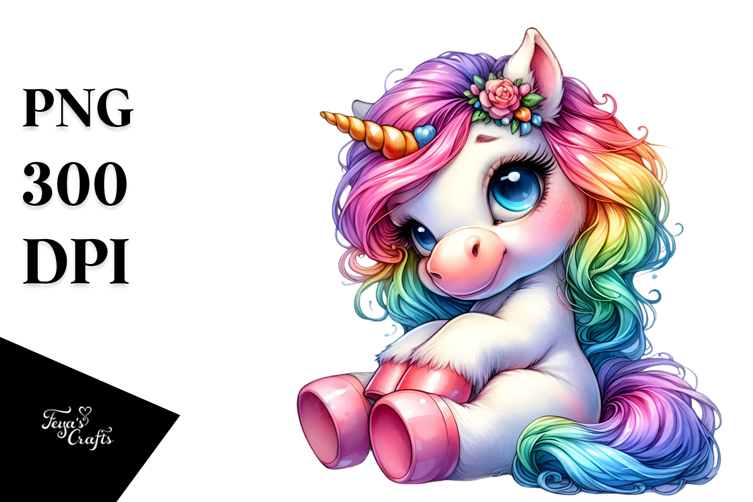 Vibrant Cute Baby Unicorn, PNG example image 1