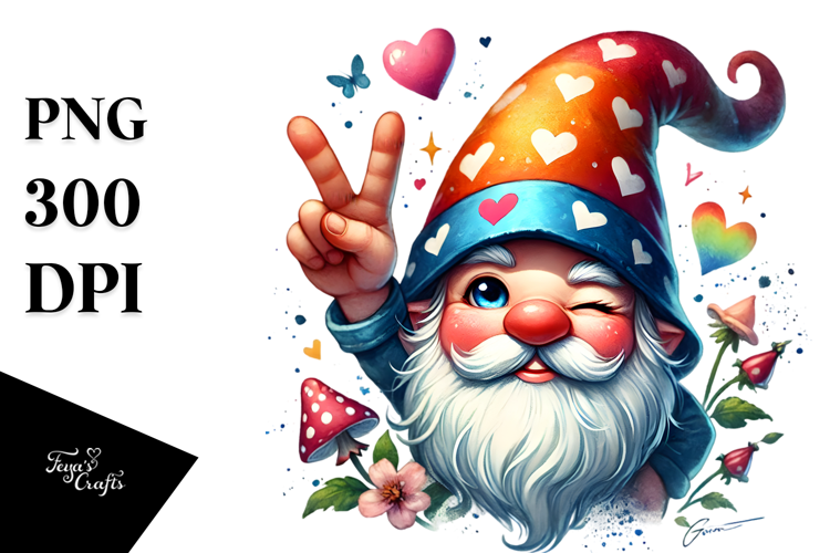 Sticker Summer Valentines Flower Png Winking Sublimation Gnome Victorysign