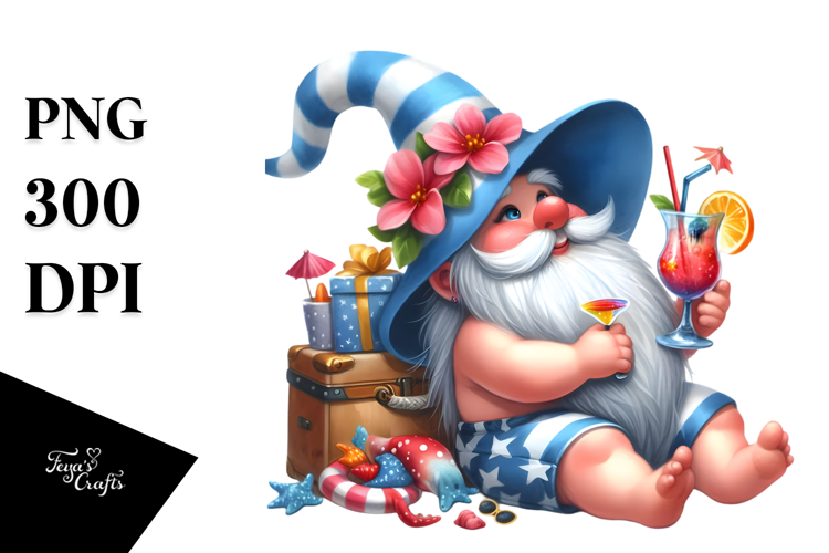 Sticker Whimsical Summer Flower Png Cocktail Sublimation Gnome Beachwear