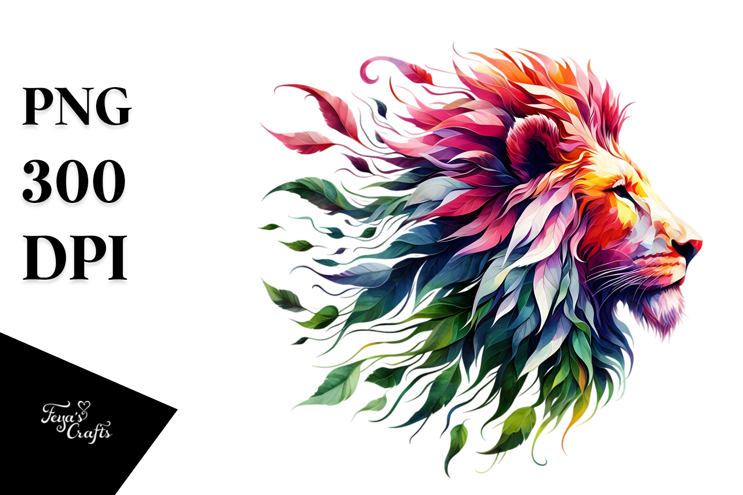 Watercolor Vibrant Lion Body Plantleaves
