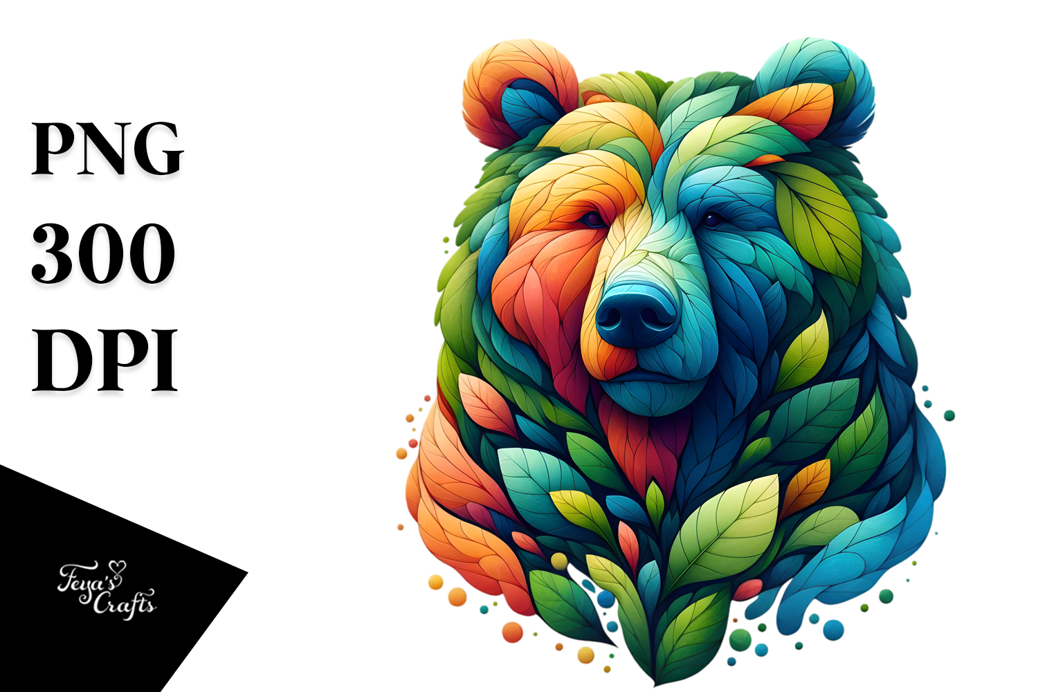 Watercolor Flowers Bear Abstract Vibrant Halfbody Plantleaves