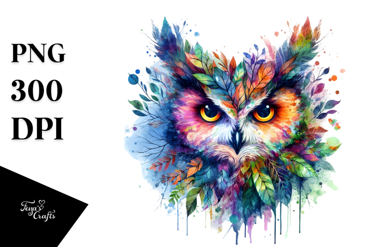 Sticker Summer Flower Splashes Owl Png Sublimation Whitebackground Plantleaves