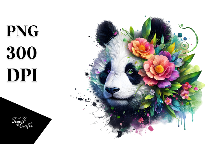 Watercolor Flowers Abstract Vibrant Panda Halfbody Plantleaves