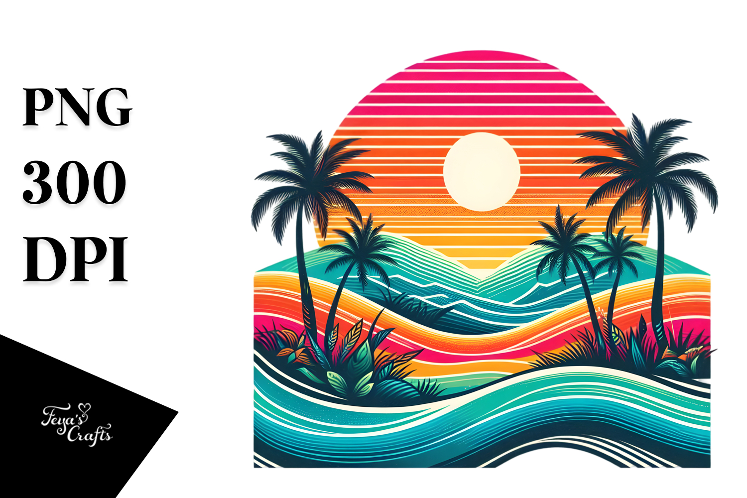 Retro Clipart Sunset Tropical Rainbow Whitebackground Centered T-shirtstyle