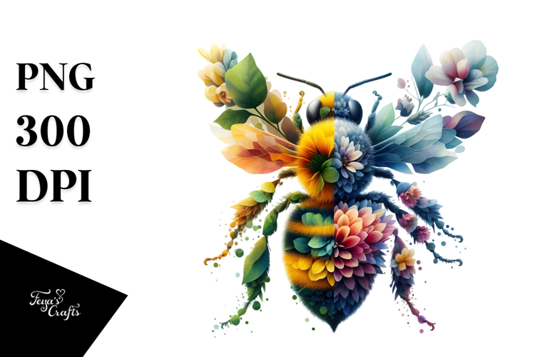 Watercolor 3d Flowers Abstract Leaves Plant Vibrant Glass Bee