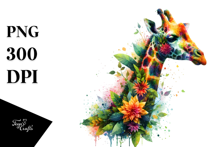 Watercolor Flowers Splashes Abstract Vibrant Giraffe Body Half Plantleaves