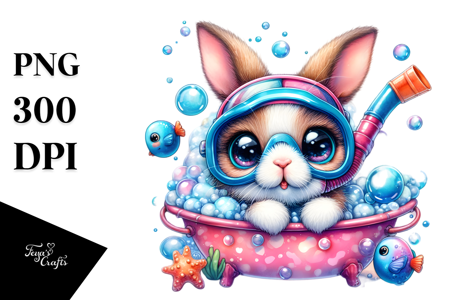 Watercolor Bunny Expressive Snorkel Whitebackground Bubblebath Bigeyes Expressiveface