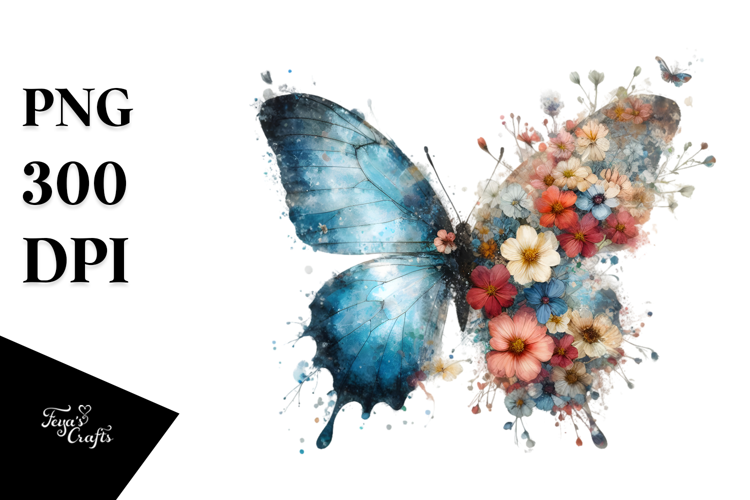 Sticker Flower Splashes Butterfly Png Grungy Sublimation Whitebackground