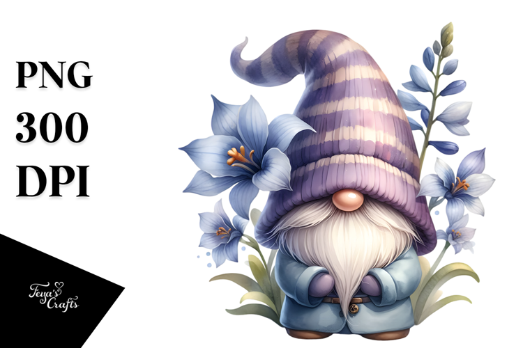 Cute GNOME with Lobelia, Transparent PNG example image 1