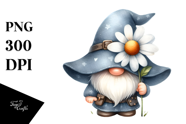 Cute GNOME with Daisy, Transparent PNG example image 1